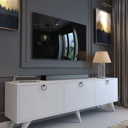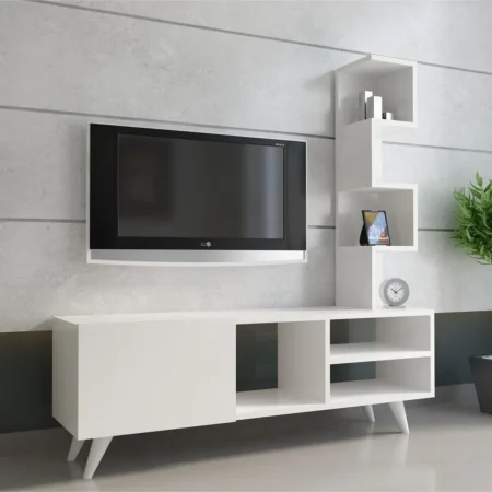 Onlinenamestaj Tv komoda Orhideja belo sa zidnom policom