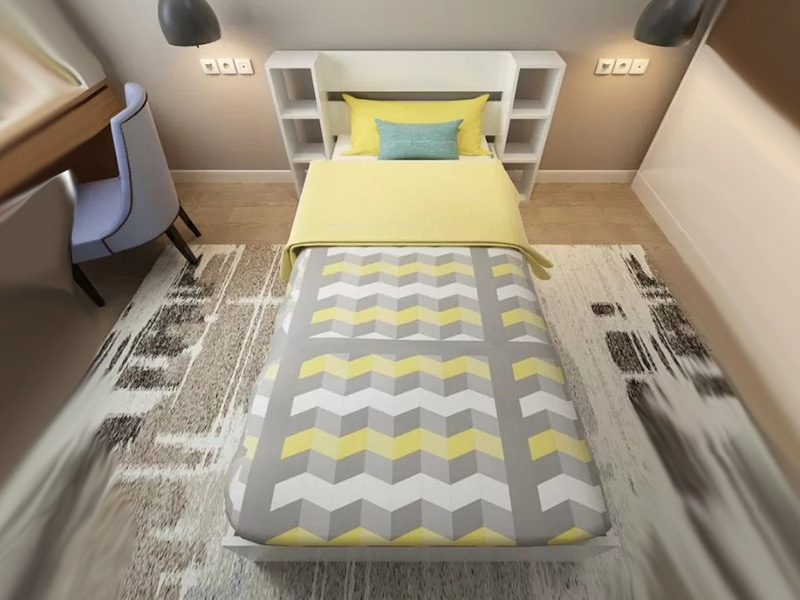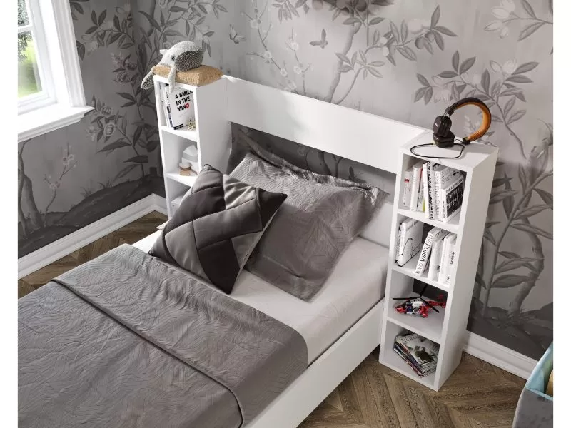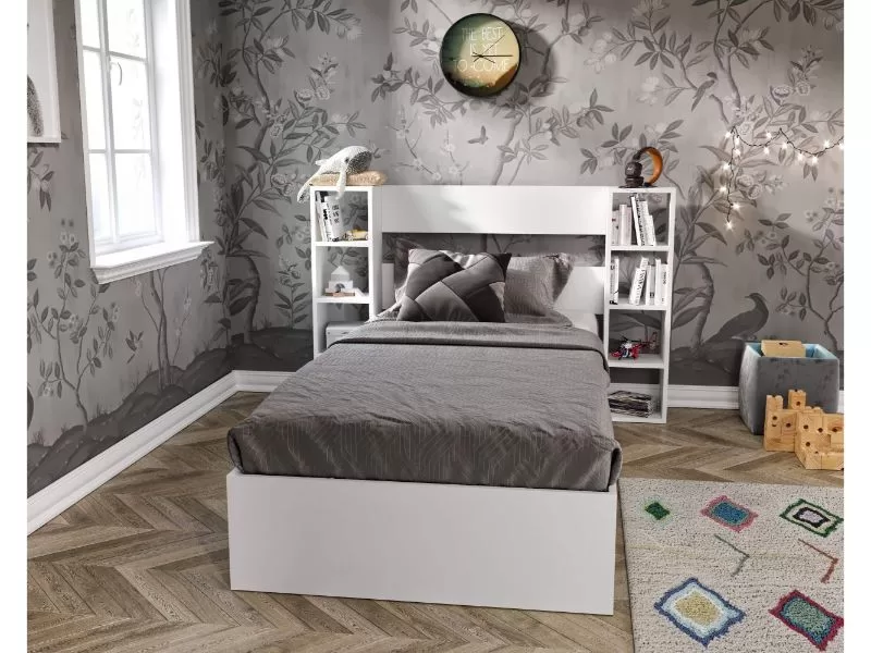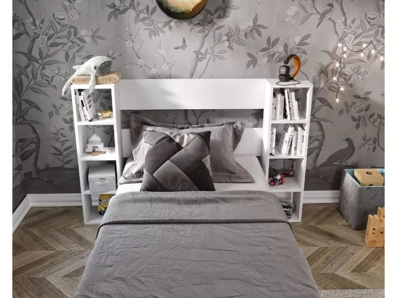 Ovaj krevet sa osam polica u uzglavlju pruža praktičan i elegantan prostor za odlaganje vaših omiljenih knjiga ili dekorativnih predmeta.