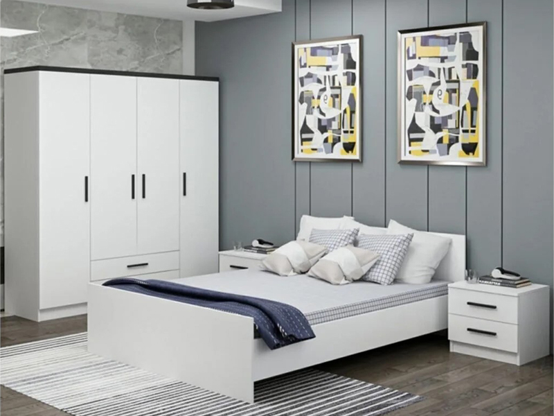 Set za spavaću sobu Dvorac 2 izrađena je od visokokvalitetne iverice debljine 18 mm površine presvučene melaminskom folijom u beloj boji,okantovano abs trakom.