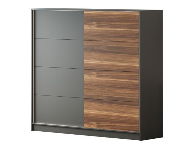 Set za spavaću sobu Paris 1 izrađen je od visokokvalitetne iverice debljine 18 mm površine presvučene melaminskom folijom u kombinaciji antracit sive boje i drvnog dezena sve okantovano abs trakom.