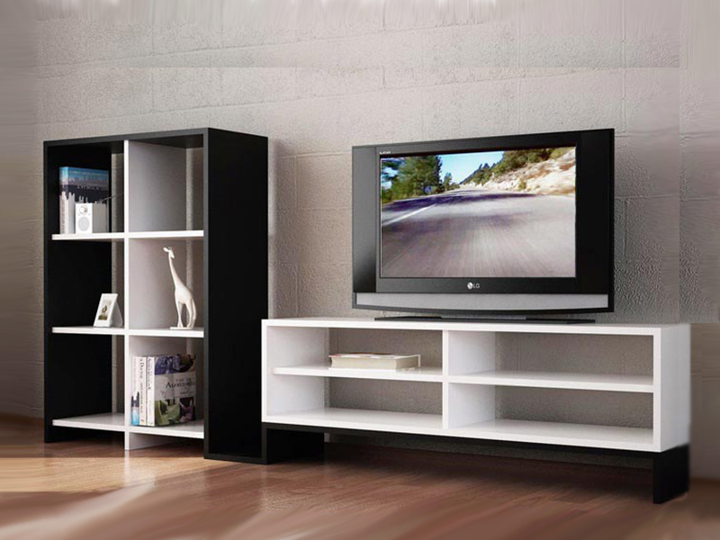 TV komoda izrađena je od visokokvalitetnog univera debljine 18 mm koji je obložen melaminskom folijom kombinacije bele i crne boje koja svojom zaštitom daje otpornost na habanje.