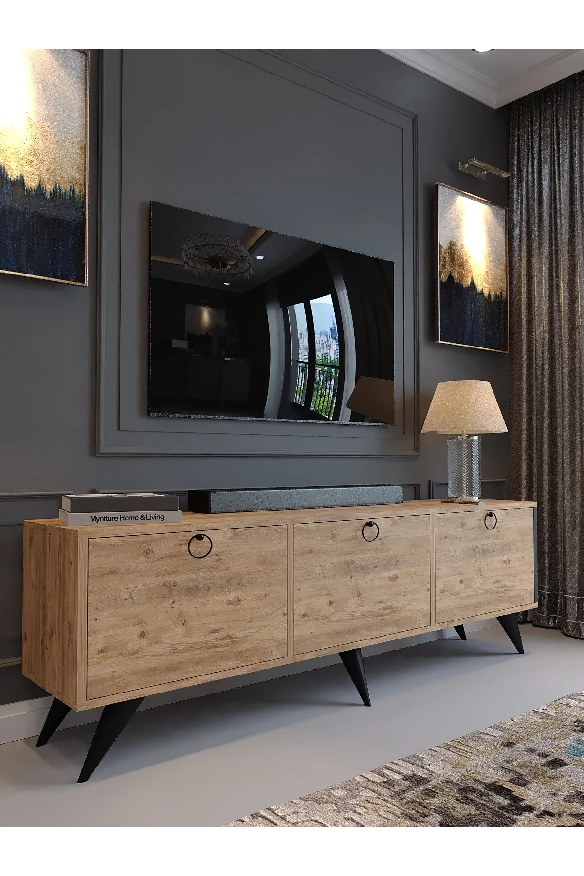 Tv komoda SN 223,izrađena od kvalitetnog univera 18 mm obloženog melaminskom folijom u drvnom dezenu,kant traka abs 0.5 mm.