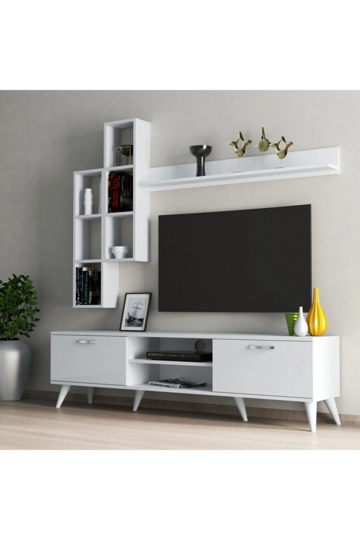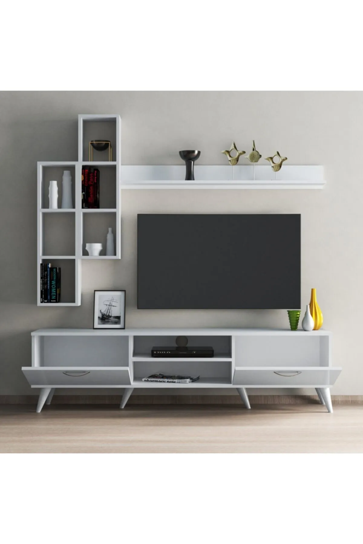 Elegantna i moderna komoda sa zidnom policom predstavlja upečatljiv komplet dnevnog boravka.