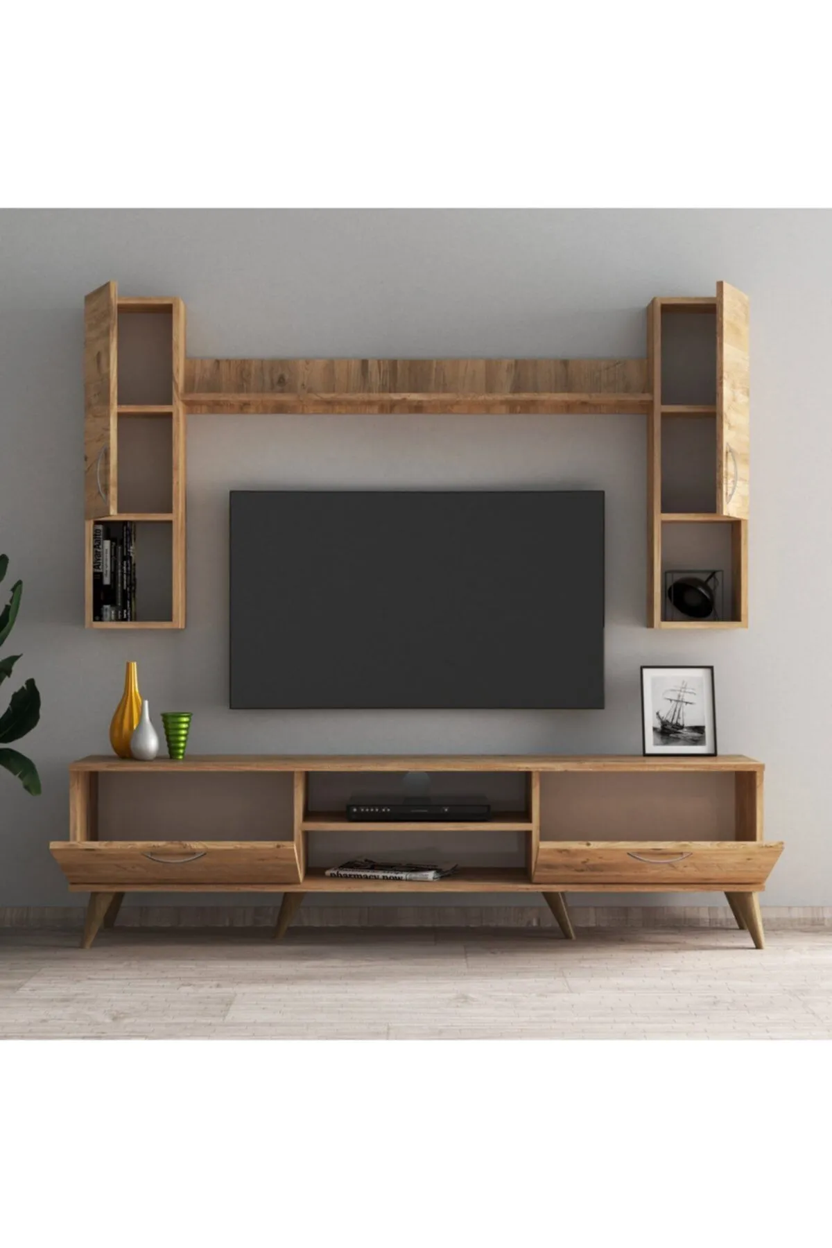 Tv komoda SN 344,izrađena od kvalitetnog univera 18 mm obloženog melaminskom folijom u drvnom dezenu,kant traka abs 0.5 mm.